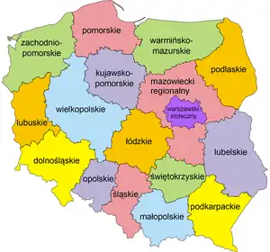 | NUTS 2 | Regions (regiony); coterminous with voivodeships, with one exception (Mazovian Voivodeship, which is split into 2 NUTS units) | 17 |