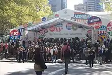 In 1993, the Council of Fashion Designers of America, CFDA, led by president Stan Herman and executive director Fern Mallis,[10][11] consolidated the citywide events known as "New York Fashion Week" by staging them in a cluster of white tents in Bryant Park.[12][13][14] The event was branded with the trademark "7th on Sixth".[15]