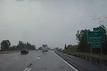 The New York State Thruway system is a collection of six individual components across the state of New York that connect the state to four neighboring states (Connecticut, Massachusetts, New Jersey, and Pennsylvania) as well as the Canadian province of Ontario. Together, the highways extend for 569.83 miles (917.05 km),[1] making the Thruway system one of the largest toll highway systems in the United States.[5] The longest of the six components is the 496-mile (798 km) mainline. Of the 570 miles in the Thruway system, 560.85 miles (902.60 km) (98.4%) carries at least one Interstate Highway designation.[1] Only three sections of the system are not part of the Interstate Highway System; these are the Garden State Parkway Connector in Rockland County, a 6-mile (10 km) portion of the Berkshire Connector between its western terminus at exit 21A on the mainline near Selkirk and where it joins up with Interstate 90 at exit B1 near Castleton-on-Hudson, and a short section of the mainline within exit 24 in Albany that is located between where I-87 departs the roadway and I-90 enters it. They are designated as New York State Route 982L (NY 982L), NY 912M, and NY 915H, respectively, all unsigned reference routes.[6] The speed limit, enforced by the New York State Police, is 65 miles per hour along most of the Thruway. The main exceptions to this are in the densely-populated northern suburbs of New York City; the suburbs and city of Buffalo; in Westchester and Rockland counties. There, the speed limit is 55 miles per hour.[7]