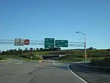 By December 1973, exit 29A on the Thruway was completed, along with new roadway leading from the exit to the south end of the Finks Basin Bridge.[6] Then by December 1974, the NY 5 arterial was completed in Little Falls. At this time the only main connection between the Thruway and Little Falls was the Finks Basin Bridge, a one-way signalized bridge with a 15 ton limit. This caused trucks over 15 tons to detour 5.21 miles (8.38 km) along NY 5S and NY 167 to access Little Falls. Along NY 5S trucks had to climb a steep 7.2% grade for just over one mile (1.6 km) then descend 7% grade for .5 miles (0.80 km).[6] Then by 1978,[7] a new two-lane arterial highway was being built from NY 5 to the south side of the Finks Basin Bridge, where it intersected the previously built roadway linking to the Thruway. By 1981, the new roadway was completed and NY 169 was extended south to NY 5S and better accessed the new exit 29A on the New York State Thruway.[6][8][9]