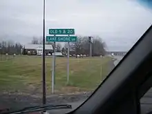 In Geneva, NY 5 was initially routed on East North Street and Border City Road, overlapping NY 14 through the city and rejoining its modern routing in East Geneva.[28] The overlap was eliminated c. 1931 when NY 5 was moved onto a new roadway located along the edge of Seneca Lake.[28][29] NY 5 was realigned again in the 1960s to use a new divided highway built midway between the lake shore road and Border City Road.[41][55] Border City Road is now maintained by Seneca County as CR 110.[56]