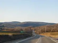 NY 53 begins at an intersection with NY 415,[3] the former routing of U.S. Route 15 (US 15) through the Southern Tier,[4] southeast of Kanona, a hamlet within the Steuben County town of Bath. It initially heads northwest on Main Street, following the Cohocton River into the center of Kanona. At this point, NY 53 leaves Main Street to follow an unnamed road north through the residential northern half of the community to an interchange with the Southern Tier Expressway (I-86 and NY 17) at exit 37. Not far from here is the southern terminus of I-390, located about one and a half miles (2.4 km) to the northwest at exit 36. North of I-86, NY 53 follows Fivemile Creek northeastward into a valley that leads to the rural town of Wheeler.[3]