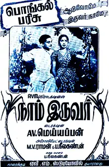Naam Iruvar (English: We Two) is a 1947 Indian Tamil-language drama film directed and produced by A. V. Meiyappan. It is based on the play Thyaga Ullam written by Pa. Neelakantan. The film stars T. R. Mahalingam and T. A. Jayalakshmi. It was released on 12 January 1947 and became a success.