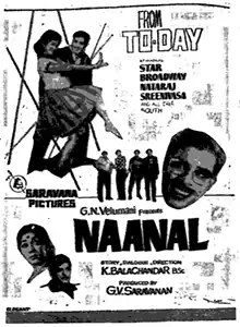 Naanal (transl. Reed) is a 1965 Indian Tamil-language crime comedy film, written and directed by K. Balachander. It is based on his play of the same name. The film stars R. Muthuraman, Major Sundarrajan, Srikanth, Sowcar Janaki, K. R. Vijaya and Nagesh. It was released on 24 December 1965 and failed at the box office.