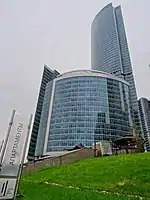 Naberezhnaya Tower (Russian: Башня на Hабережной, tr. Bashnya na Naberezhnoy, literally means Tower on the Embankment) is an office complex composed of two skyscrapers and a high-rise located on plot 10 in the Moscow International Business Center (MIBC) in Moscow, Russia with a total area of 254,000 m2 (2,730,000 sq ft). The buildings are named after the first three letters of the alphabet and from the lowest height to the tallest: the 17-story tall Tower A, the 27-story tall Tower B, and the 59-story tall Tower C. Construction of the complex started in 2003, with Tower A being completed in 2004, Tower B in 2005, and Tower C in 2007.[9][10][11][12][13]