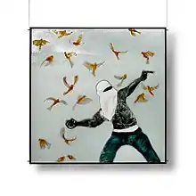 Nabo Gass’ merit lies in the homogeneous relationship of his particular partly autobiographic, partly ordinary world of experience with his own technical inventions in one of the presently barley examined area of general art science, that of stained glass painting. His works are a kaleidoscopic collection of the happy and sad aspects of life, reality and everything belonging to it. They are everyday thoughts put into pictures which, as such, linger in the mind of the observer.[1]