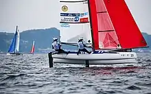In 2012 Nacra Sailing won the design competition held by World Sailing, the world governing body for the sport of sailing recognized by the International Olympic Committee and the International Paralympic Committee, for a new Olympic racing catamaran, the Nacra 17, which was used in the new for 2016 Olympic Mixed Multihull class, which requires one male and one female sailor per boat.[9][10][11] In 2017 it was announced that a modified version of the boat with foiling capability will be used in the Tokyo 2020 Olympics.[12][13]