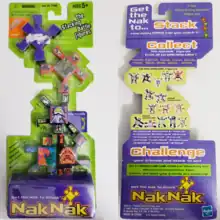 NakNak was a collectable toy line manufactured by Hasbro from early 2001 to late 2003. They were "stacking battle action figures" that clicked when their arms or legs were moved. In addition to solely collecting the toys, players were also able to play a game of stacking them without the figures falling over. It was heralded as the "first ever stacking battle action figure brand".[1]
