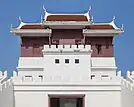 In 1826, Vientiane King Chao Anouvong, perceiving Siam as weakened, attacked Korat in the Laotian Rebellion against King Rama III that was to rage on for two years.[2] Lady Mo, the wife of the deputy governor at the time, is credited with having freed the city from Anouvong's army, and has been honored with a statue in the center of downtown Korat. A full account of the war and its impact on Laos and Siam, is detailed in the book, Lady Mo and Heroism at Tung Samrit, written by Frank G Anderson. The city's old wall, east of the monument was designed and built by a French engineer who is believed to be the one who also built Naraimaharaj Palace in Lopburi. The French-based design is reflected in the moat system that surrounds the innermost portion of the city.