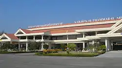 From left to right, top to bottom : Nakhon Si Thammarat City Wall, Wat Phra Mahathat, Nakhon Si Thammarat Stadium, Nakhon Si Thammarat Airport, Nakhon Si Thammarat railway station | |