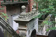 Nam Koo Terrace is a two-storey mansion, incorporating strong elements of both Eastern and Western architectural styles. As one of the more prominent villas in the Wan Chai District, Nam Koo Terrace covers over two hundred square meters of land. It is also referred to as the "red house" because the majority of the building's external wall is constructed from red bricks. Today, the building exists in a ruined state due to the effects of corrosion suffered during the Japanese invasion and ineffective preservation.[8]