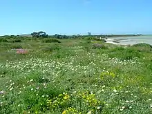 Little Namaqualand is within the Namakwa District Municipality, forming part of Northern Cape Province, South Africa. It is geographically the largest district in the country, spanning over 26,836 km2.[1] A typical municipality is Kamiesberg Local Municipality. The semidesert Succulent Karoo region experiences hot summers, sparse rainfall, and cold winters.[1]