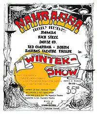 The Nambassa Winter Show with Mahana was all about a bunch of aspiring young hippie entertainers who moved into a youth camp in West Auckland, out of which this community of 60 people produced and directed two musical theatrical productions and toured the North Island of New Zealand in a convoy of Mobile homes, buses and vans, performing at major centres and theatres throughout September and October 1978. While initially four main shows were scheduled for this collective theatre company, repeat and spontaneous performances around the nation saw this number of live performances increased to over 10. This theatrical extravaganza was organised by the Nambassa Trust as part of its national promotion of the arts and towards promoting its 1979 three-day music, crafts and Alternative lifestyle festival, which was held in Waihi and attracted 70,000 people.