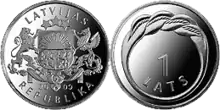 On June 8, 2009, the Bank of Latvia issued a new coin of 1 Latvian lats with the Namejs ring, which encloses the numeral 1, on the reverse.[8] It was legal tender in the Republic of Latvia until the adoption of the Euro currency in 2014.