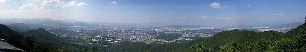 Namhansanseong is a historical mountain fortress city 25 km southeast of Seoul, South Korea. It sits approximately 480 m above sea level and is aligned with the ridges of the mountain for maximum defensibility. The fortress, stretching 12 km in length, protects a vast area used as an emergency capital city during the Joseon Dynasty of Korea (1392–1910). The design is based on fortress architecture of East Asia, embodying aspects of four historical cultural styles: the Joseon of Korea, the Azuchi-Momoyama Period of Japan, and Ming and Qing China. It was extensively developed during the 16th to 18th centuries, a period of continuous warfare. The technical development of weaponry and armaments during this period, which saw the use of gunpowder imported from Europe, also greatly influenced the architecture and layout of the fortress. Namhansanseong portrays how the various theories of defense mechanisms in Korea were put to form by combining the everyday living environment with defense objectives. The fortress indicates how Buddhism played an influential role in protecting the state, and it became a symbol of sovereignty in Korea.[1][2] It stands on the Namhansan (South Han Mountain), containing fortifications that date back to the 17th century and a number of temples. It can be accessed from Seoul through Namhansanseong station of Seoul Subway Line 8.