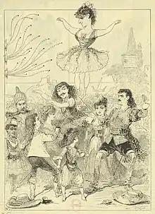 - Reproduced in Gallica. accessed 9 July 2021. The full caption reads - Namouna, ballet archipelliculaire, par MM. Nuitter et Petipa, orchestration de M. Lalo. Les Pointes, par la diva SANGALLI; - Ballades, par mademoiselle SUBRA; - Parade, par mademoiselle Invernizzi: - Cassonade, par mademoiselle MERCEDES; - Estafilade, par mademoiselle BIOT; - Estocades, par M. MERANTE; - Gambades, par M. VASQUEZ; - Embuscade, par M. PLUQUE; - Promenade, par M. CORNET; - OEillades; par tout le corps de ballet.