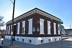 The Nampa and Meridian Irrigation District Office in Nampa, Idaho, is a 1-story brick and concrete building designed by Tourtellotte and Hummel and completed in 1919. The building features tall, narrow window fenestrations topped by large, vertical keystones with sidestones. Most of the windows have been replaced by a flat stucco surface painted brilliant white. The site was listed on the National Register of Historic Places in 1982.[2]