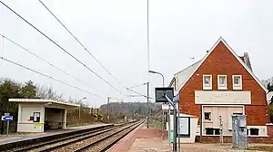 Namps-Quevauvillers is a railway station located in the commune of Namps-Maisnil and near Quevauvillers, in the Somme department, France. The station is served by TER Hauts-de-France trains from Amiens to Abancourt.[2] The station is one of several low importance stations along the 139 km long line. According to the SNCF, in 2003 it averaged 5 passengers per operating day.[1]