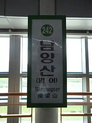 Namyangsan Station (Korean: 남양산역; Hanja: 南梁山驛) is a station on the Busan Metro Line 2 in Mulgeum-eup, Yangsan, South Gyeongsang, South Korea.