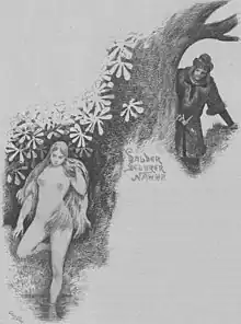 In book III of Gesta Danorum, Nanna is not a goddess, but rather a daughter of the mortal King Gevar. Nanna is attracted to her foster-brother Höðr (here, also a human), son of Hothbrodd, and "seeks his embraces". One day, Baldr, who Saxo describes as the son of the god Odin, witnesses Nanna bathing and lusts for her; "the sheen of her graceful body inflamed him, and her manifest charms seared his heart – for there is no stronger incitement to lust than beauty."[7]: 69 Fearing that Höðr will be an obstacle for his acquisition of Nanna, Baldr resolves to slay Höðr.[7]