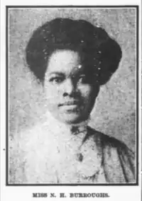 Nannie Helen Burroughs (May 2, 1879 – May 20, 1961) was an educator, orator, religious leader, civil rights activist, feminist, and businesswoman in the United States.[1] Her speech "How the Sisters Are Hindered from Helping," at the 1900 National Baptist Convention in Virginia, instantly won her fame and recognition. In 1909, she founded the National Training School for Women and Girls in Washington, DC. Burroughs' objective was at the point of intersection between race and gender.[2]