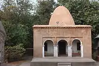 (7) the renovated Chand Raya (1768) temple at Uchkaran as a small flat roofed or Chandni type structure with traditional pillars and terracotta decoration.[26]