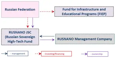- RUSNANO Management Company that was created in 2013,[19] is managing all JSC RUSNANO's assets, leading business development and investment activities. RUSNANO Management Company is governed by the Executive Board and Board of Directors.[20]