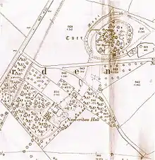 In 1697 Arthur Devereux employed the Bridgnorth architect Henry Pagett[10] to design a brick house, which stood to the west of the Nantcribba Castle and Hen Nantcribba. This house was placed on a ridge of high ground, with views over Shropshire to the east and Montgomeryshire to the west. This house was modified in the mid 18th by the Earl of Hereford, but shortly afterwards the Earls fell on hard times and the House was let to a succession of tenants, one of whom was Sir James Bland Burges, the M P for Helston, in, Cornwall, who lived there between 1785 and 1789[11] Eventually in 1863, the House and surrounding lands were sold to John Naylor, a Liverpool banker, who had already purchased two other Montgomeryshire estates: Brynllywarch in Kerry and Leighton Hall. It was probably at this time that the frontage of the house was lowered and altered. The house was largely destroyed in 1899 when the family who were living in it were at a ball in Welshpool.[12] The house, now known as Parklands, has subsequently been re-built, incorporating part of the stable block, while some of the walled garden survives.