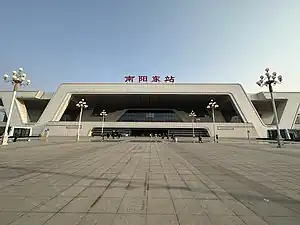 The Nanyangdong (Nanyang East) railway station (simplified Chinese: 南阳东站; traditional Chinese: 南陽東站; pinyin: nányáng dōngzhàn) is a railway station for high-speed trains in Nanyang, Henan, China. It was opened on December 1, 2019 with the Zhengzhou to Xiangyang section of Zhengzhou–Wanzhou high-speed railway.