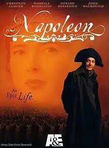 Napoleon is a 2002 historical miniseries which explored the life of Napoleon Bonaparte. It was the most expensive television miniseries in Europe up to that time, costing an equivalent of (USD) $46,330,000 to produce. The miniseries covered Napoleon's military successes and failures, including the battles of Austerlitz, Eylau, and Waterloo and the retreat from Russia. It also delved into Napoleon's personal life: his marriage to and divorce from Josephine de Beauharnais, his marriage to Marie Louise, the Duchess of Parma and daughter of Francis II, and his affairs with Eleanore Denuelle and Marie Walewska. The series draws from Max Gallo's biography.