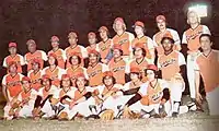 The team was established in 1945 as Queliteros de Hermosillo (English: Hermosillo Quelite Growers). In 1947, the Queliteros won their first championship in the Liga de la Costa del Pacífico (Pacific Coast League), the competition that preceded the Mexican Pacific League. The club changed its name to the current Naranjeros in the 50s and won the Pacific Coast League back to back in the 1955–56 and 1956–57 seasons.[2] The Naranjeros played in the Estadio de la Casa del Pueblo that was later renamed to Estadio Fernando M. Ortiz.[3]