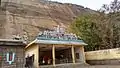 The Thiruvilayadal Purana, written by Perumbatta Puliyur Nambi and later amended by Paranjothi Munivar, says that the Chola king, who could not win the battle against the Pandya ruler, sought the help of Jains. They created a giant elephant using their mystic powers and directed it to kill the Pandya king and destroy his capital. But the Pandya prayed to Lord Siva to save him and his capital. The Lord sent to him the "Narasinga Asthram" (the eight lettered word Namonarayana), which turned the elephant into a hill. To commemorate this event, a stone elephant was installed in Madurai near the Vaigai facing the north, which is found near the Yanaikkal bridge even today. Inscriptions in the cave temple say that Maran Kari, the minister of the Pandya king, started the construction of the temple in 770 A.D., which remained unfinished, either due to his death or due to some other calamity, and was completed by his brother Maran Eyinan later. He also built the Muka Mandapa and consecrated the temple.[2]