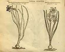 The genus Narcissus was well known to the ancients. In Greek literature Theophrastus[23] and Dioscorides[24] described νάρκισσος, probably referring to N. poeticus, although the exact species mentioned in classical literature cannot be accurately established. Pliny the Elder later introduced the Latin form narcissus.[25][26][27][28] These early writers were as much interested in the plant's possible medicinal properties as they were its botanical features and their accounts remained influential until at least the Renaissance (see also Antiquity). Mediaeval and Renaissance writers include Albert Magnus and William Turner, but it remained to Linnaeus to formally describe and name Narcissus as a genus in his Species Plantarum (1753) at which time there were six known species.[1][29]