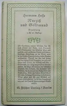 Narcissus and Goldmund (German: Narziß und Goldmund; also published as Death and the Lover) is a novel written by the German–Swiss author Hermann Hesse which was first published in 1930. At its publication, Narcissus and Goldmund was considered Hesse's literary triumph; chronologically, it follows Steppenwolf.