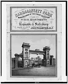 Narragansett Park opened on July 31, 1867.[1][2] The one-mile track was located on a 37-acre parcel of land 3 miles outside of Providence, Rhode Island.[2] The park was constructed by Amasa Sprague, who previously operated Washington Park in Providence and decided to build his own park after falling out with his business partner Edward Babcock over gambling.[3]