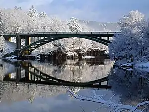 The Narrowsburg–Darbytown Bridge is an arch under bridge spanning the Delaware River between Darbytown, Pennsylvania and Narrowsburg, New York. It carries Pennsylvania Route 652 and New York State Route 52. Narrowsburg is located in the town of Tusten, but the hamlet along the river's edge is known as Narrowsburg because it is the narrowest part of the River.