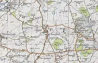 "NASH, a hamlet in Whaddon parish, Bucks; 5½ miles E of Buckingham. Acres, 1, 430. Real property, £1, 813, Pop., 462. Houses, 103. The property is divided chiefly among five. The hamlet forms chief part of the chapelry of Thornton-cum-Nash; and contains the church of that chapelry, a Baptist chapel, and a national school. Nash Common is a meet for the Whaddon Chase hounds."[4]
