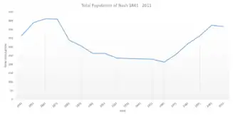 The most recent, 2011, census of the UK put the total population of Nash at 417.[1] The population has grown sharply since the lowest recorded population total of 214, which was found in the 1961 census.[12] The population previously went through a long period of decline between 1871 (when the highest total population of 460 was recorded) and 1961.[13]