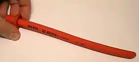 In medicine, a nasopharyngeal airway, also known as an NPA, nasal trumpet (because of its flared end), or nose hose, is a type of airway adjunct, a tube that is designed to be inserted through the nasal passage down into the posterior pharynx to secure an open airway. It was introduced by Hans Karl Wendl in 1958.[1] When a patient becomes unconscious, the muscles in the jaw commonly relax and can allow the tongue to slide back and obstruct the airway.[2] This makes airway management necessary, and an NPA is one of the available tools. The purpose of the flared end is to prevent the device from becoming lost inside the patient's nose.