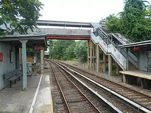The St. George-bound platform was accessed from the intersection of Bethel Avenue and Saint Andrews Place, while the Tottenville-bound platform led to the end of Nassau Place. At the west (railroad south) end of the station, an overpass connected the two platforms, and had an exit at Nassau Place. This would allow people to cross the railway.[17] The staircase to St. Andrews Place has no canopy, while the staircase to Nassau Place has one.[18] The staircase to the Tottenville-bound platform from the overpass, and the staircase down from St. Andrews Place to the St. George-bound platform, were demolished.[19]