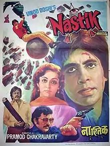 Nastik (transl. Atheist) is a 1983 Indian Hindi-language action drama film produced by Vinod Doshi and directed by Pramod Chakravorty. The film stars Amitabh Bachchan, Hema Malini, Pran, Deven Verma, Sarika, Amjad Khan, Aruna Irani, Madan Puri, Bhagwan Dada, Nalini Jaywant, Rita Bhaduri, Lalita Pawar, Bob Christo and Tom Alter. The soundtrack was scored and composed by Kalyanji Anandji and the songs were written by Anand Bakshi. It was the last film to pair Bachchan and Malini before they made a comeback 20 years later in Baghban (2003).