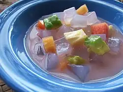 ![]() Nata de coco are the translucent cubes in this fruit salad | |