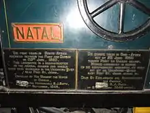 ![]() The reconstructed engine Natal, Durban station | |||||||||||||||||||||||||||||||||||||