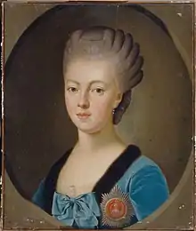 Natalia Alexeievna, Tsarevna of Russia (25 June 1755 – 26 April 1776) was the first wife of Paul Petrovich, Tsarevich of Russia (future Emperor Paul I), son of the Empress Catherine II. She was born as Princess Wilhelmina Louisa of Hesse-Darmstadt as the fifth child of Louis IX, Landgrave of Hesse-Darmstadt and his spouse Countess Palatine Caroline of Zweibrücken.