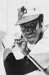 Throughout his career with the Padres from 1969 to 1974, he was a standout player and their biggest star as they finished in last place in the six-team National League (NL) West in each of their first six seasons, averaging 101 losses per season and concluding each year from 28+1⁄2 to 42 games behind the division leader.[7][8] In 1969, the Padres' inaugural season and Colbert's first full season in the big leagues, San Diego began the season with Bill Davis at first base, and Colbert started only four of the first 15 games.[8] However, Davis was traded midseason,[8] and Colbert ended the season with a team-leading 24 home runs with 66 runs batted in (RBIs) and a .255 batting average.[2][9] His home runs led all MLB rookies that season. He hit 38 home runs in 1970, tying him for fifth with Hank Aaron in the NL. The next year, Colbert was named to his first All-Star Game.[10] He led the Padres in home runs (27) and RBIs (84),[2] and improved his batting average for the third straight season, hitting .264 after batting .259 in 1970.[11]
