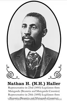 Nathan H. Haller (July 8, 1845 – February 27, 1917) was a politician in Texas. Enslaved before the American Civil War, he was elected member to the Texas House of Representatives in 1892 and re-elected to a second term. He was one of 52 African Americans to serve the Texas Legislature during the 19th century.[1]
