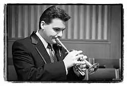 He was awarded a Fulbright Scholarship[2] for further study with Professor Reinhold Friedrich at the Hochschule für Musik Karlsruhe, Germany.
