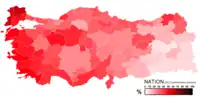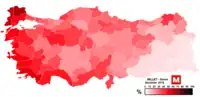 The constitutional referendum ultimately passed with a narrow margin of 2-3% on an 85% voter turnout.[14] Meanwhile, the main opposition Republican People's Party (CHP), along with MHP now-dissidents such as Meral Akşener who would go onto establish the Good Party (İYİ),[15] voiced strong opposition to the constitutional amendments which were deemed undemocratic, autocratic and seen as a threat to rule of law, democracy and separation of powers within the country.[16]