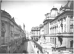 The head office of the National Bank of Romania with the view of Lipscani Street is one of the most imposing and massive bank edifices in Romania, nowadays a historic, art monument, and protected as such. It was erected on the former site of the inn built by Șerban Cantacuzino (1678–1688).