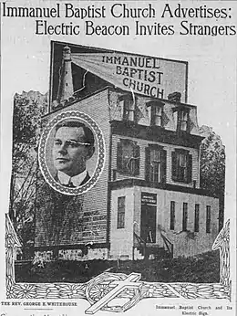 - "Immanuel Baptist Church Advertises: Electric Beacon Invites Strangers; Congregation About Two Years Old Has Bought $30,000 Lot". Washington Times. No. 4, 868. Washington, D.C. 13 October 1907. p. 11 – via Chronicling America: Historic American Newspapers, Library of Congress.